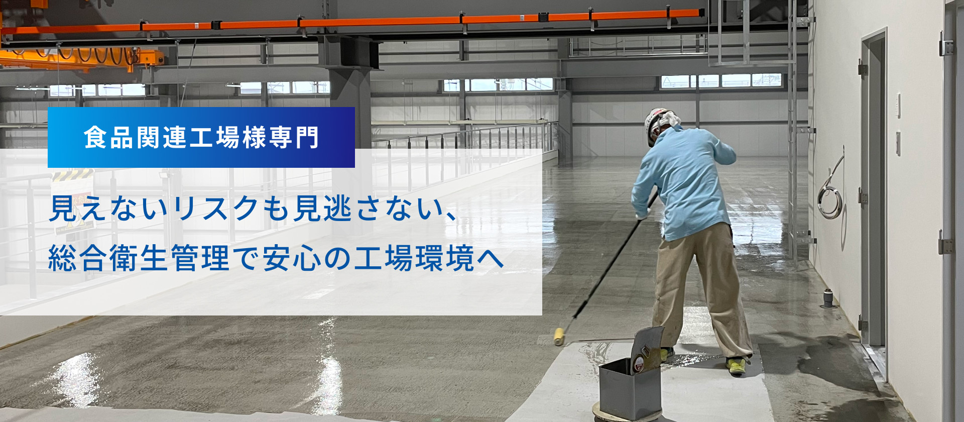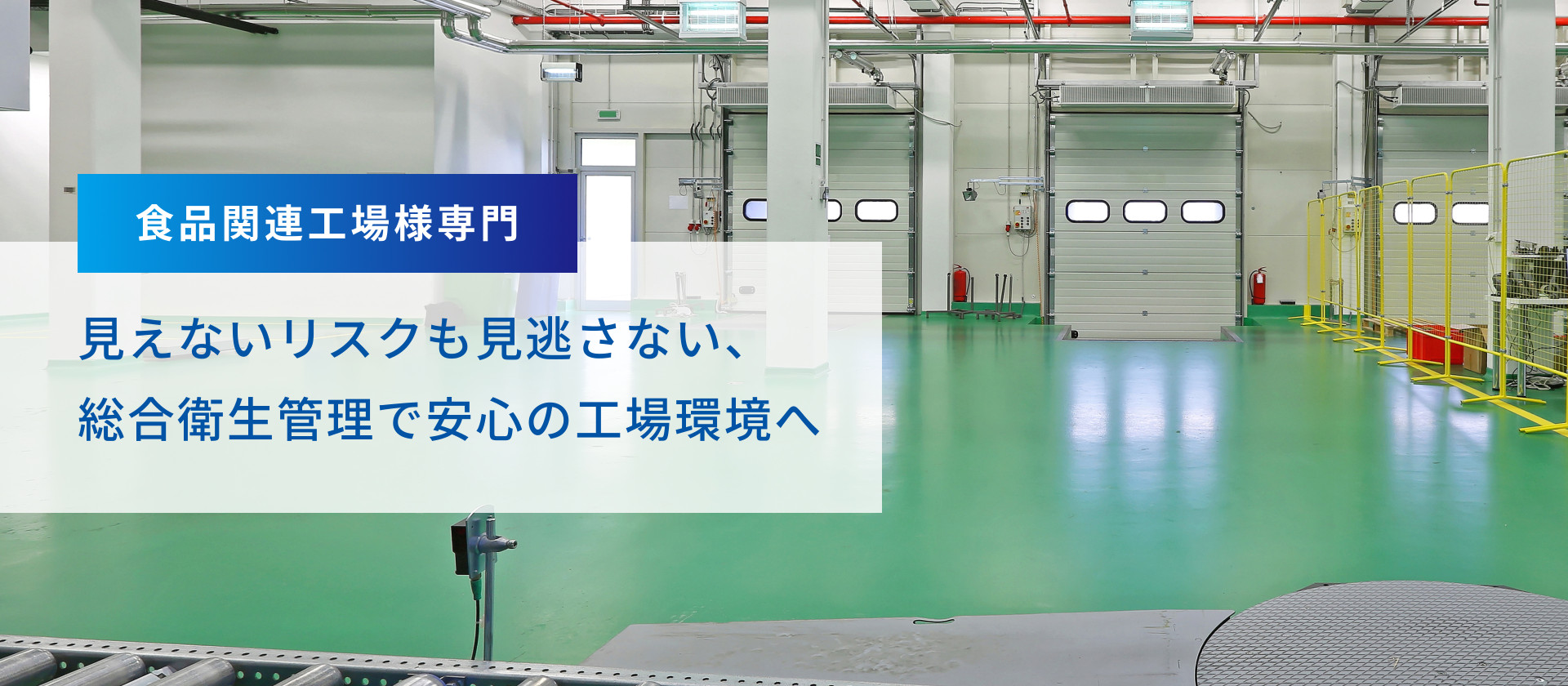 ワンストップ対応防虫・防鼠対策、改修工事、塗床、排水、ゾーニング、パーテーション、設備設置まで、食品工場に必要な衛生工事をトータルで提供します。複数業者を管理する手間がなく、衛生基準に沿った一貫性のある改善が可能です。